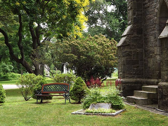 The Memorial Garden of Grace Church is located on the church grounds on the north side of the sanctuary and lies under a canopy of old maple trees. A granite Celtic cross is the centerpiece of the garden.